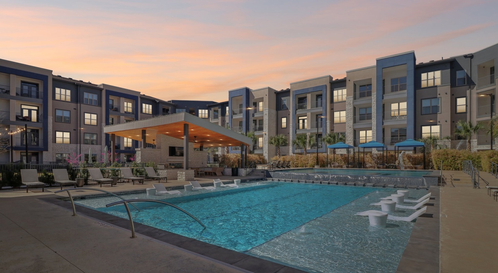 • Resort inspired pool with sun loungers and a tanning deck